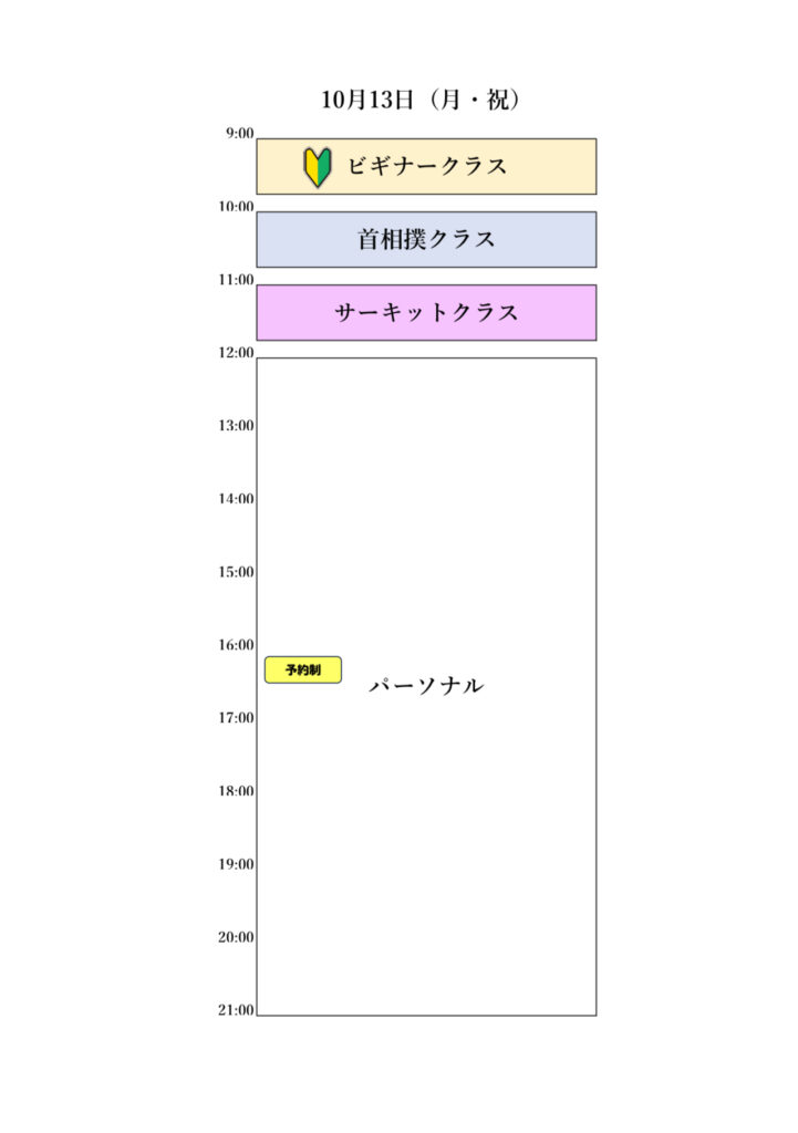 10月13日(月・祝)スケジュール変更