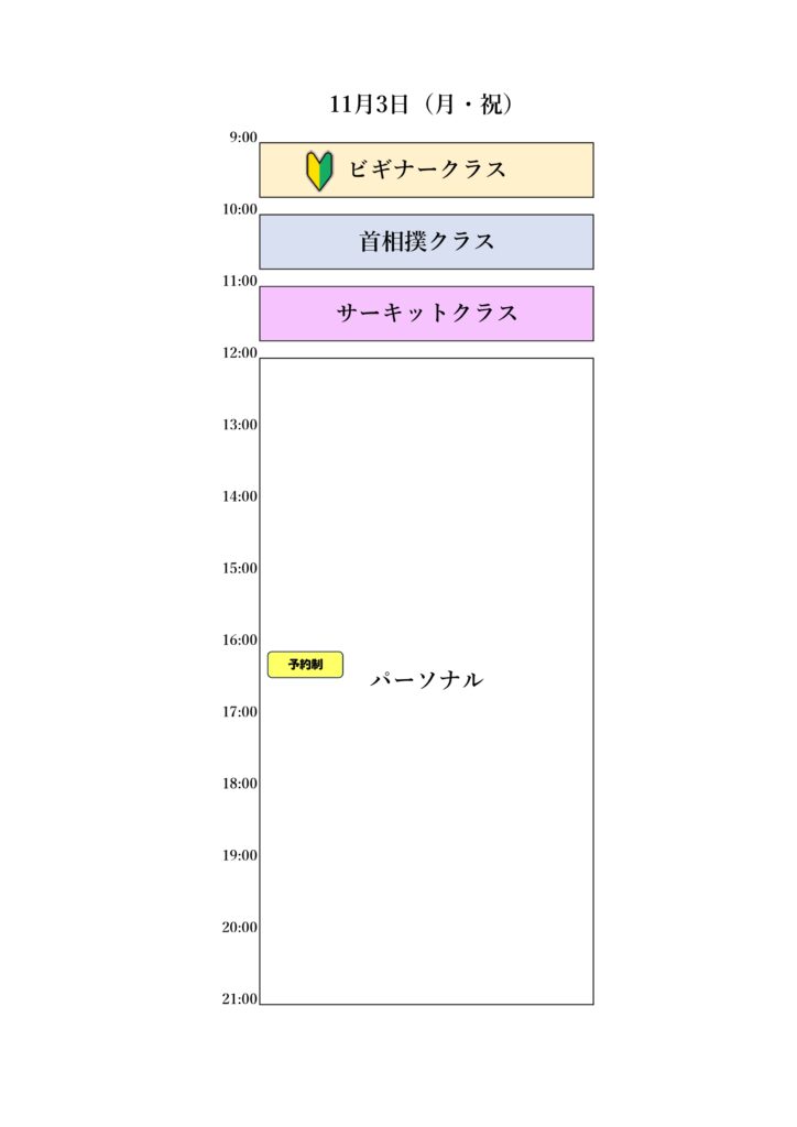 11月3日(月・祝)は、通常の月曜日とは異なり、祝日スケジュールでの営業となります。