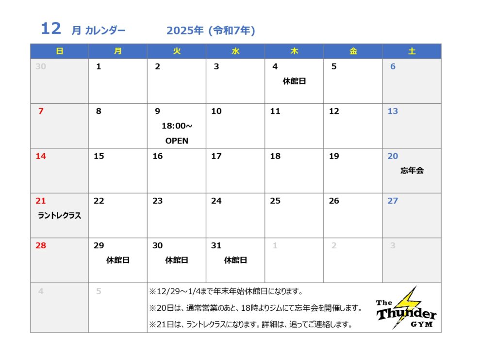 年の瀬を迎え、何かと忙しくなる季節ですが、トレーニングを継続することは体調維持やストレス解消に繋がります。寒い季節こそ、ジムでの運動で体を温め、免疫力を高める絶好の機会です!